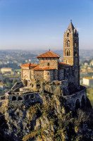 Cette chapelle dédiée à Saint-Michel édifiée au 10ème siècle sous l’impulsion du chanoine Truannus et de l'évêque Godescalca été construite au sommet d’un cône volcanique et depuis n’a cessée d'être confrontée à l’essor du pèlerinage, se trouvant à proximité du point de départ du chemin de Saint-Jacques de Compostelle. Sa façade tout comme son intérieur relève à la fois de l’art roman et de l’influence de l’art byzantin, nous laissant un livre d’images avec un large cycle de peinture illustrant les rois mages, la cité céleste, Saint-Michel…